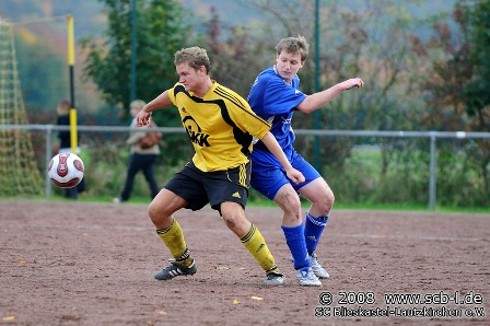 Die zweite Hälfte war noch keine drei Minuten alt, als Daniel Bartmann aus knapp 30m abzog. Stefan Schindler im Reinheimer Tor war mit den Fäusten zur Stelle, der Abpraller landete auf dem Kopf des völlig frei stehenden Fröhlich, der jedoch nur das Aluminium traf. Von vornherein war klar, dass man in Reinheim nicht viele Chancen bekommen würde, umso ärgerlich für den SC, dass man diese Riesenmöglichkeit zum Ausgleich vergab. Auch auf der Gegenseite brachte ein Fernschuss den Torwart in Schwierigkeiten: Harder konnte zunächst nicht festhalten, raffte sich jedoch schell auf und klärte vor dem einschussbereiten Angreifer (51.). Es kam nun die Zeit in der Blieskastels Schlussmann mehr in den Mittelpunkt rückte: Harder pariert gegen Nickolaus (55.), der Nachschuss von Wieczorek prallte von Innenpfosten zu Innenpfosten und dann in die Arme des SC-Keepers. Nach einer Stunde siegte Harder erneut im Duell mit Nickolaus und wieder konnte Wieczorek - der nicht seinen besten Tag erwischte - den Abpraller nicht verwerten. Es stand weiterhin nur 1:0. Reinheim verpasste es in dieser Phase für eine Vorentscheidung zu sorgen. Das böse Erwachen blieb den Gastgebern jedoch erspart. Fuhrmann überlupfte Schindler aus spitzem Winkel (75.), der Ball senkte sich aber erst hinter dem Gehäuse zu Boden. Eine sehenswerte Aktion gab es vor dem Abpfiff noch: Ein Freistoß von Marc Hess, direkt aufs Tor gezogen hätte fast zum 2:0 geführt, doch Harder war zur Stelle und lenkte das Leder noch an den Querbalken.