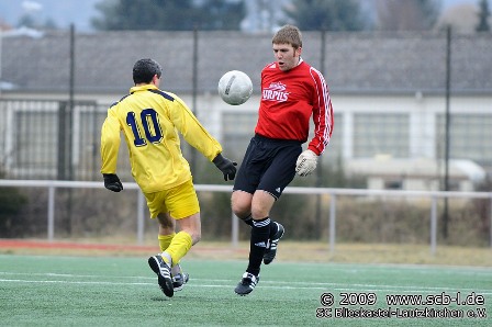 Im ersten Test des neuen Jahres hatte sich der SCB den SV Gersheim an die Florianstraße geladen. Der Bezirksligist war von Beginn an das spielbestimmende Team, konnte sich aber gegen die gut stehende Defensive kein Torchnacen erarbeiten. Nach und nach kam der SC besser in die PArtie, musste dann aber nach einem Eckball den unglücklichen Gegentreffer zum 0:1 hinnehmen. Blieskastel agierte auch nach dem Rückschlag engagiert, konnte aber die sich bietenden Tormöglichkeiten nicht nutzen. Der SC agierte auch weiterhin aus einem sicheren Abwehrverbund und machte den Gästen da sAufbauspiel durch frühes Störe nicht leicht. Dann aber kurz vor dem Seitenwechsel der nächst Rückschlag: Ein umstrittener Foulelfmeter brachte den SVG vor der Pause mit 2:0 in Front.