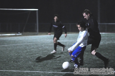 Auch die zweite Halbzeit hatte wenig strukturierte Szenen zu bieten: Ein hoher Ball, eine Kopfballablage und eine gekonnte Abnahme von Ilker Özdogan brachten dann den Ausgleich für den SC acht Minuten nach Wiederanpfiff. In der Folgezeit erarbeitete sich Blieskastel dann eine Feldüberlegenheit. Der SC hatte mehrere gute Tormöglichkeiten, die beste, als ein Schuss von Jörg Leonhardt vom FC Schlussmann spektakulär an die Latte gelenkt wird. Auch Kleinsteinhausen kam nach Unachtsamkeiten in der SC-Defensive zu Torchancen. Am Ende blieb es aber beim 2:2-Unentschieden.