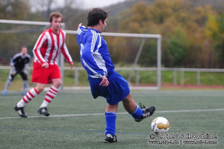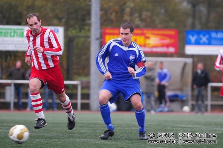 Die rund 100 Fußballfans an der Florianstraße wurde an diesem Sonntag nicht mit gutem Fußball für ihr Kommen belohnt, hatten doch beide Teams gleich von Beginn an sichtliche Probleme im Spielaufbau. Zunächst waren es aber die SCler, die durch zwei Weitschüsse zu ersten Tormöglichkeiten kamen, als Matthias Meyer nach fünf Minuten nur den Pfosten traf, ehe er nach 13 Minuten knapp verzog. Peter Pusse vergab bei einem Eckball eine Kopfballchance. Bezeichnenderweise resultierten alle Torraumszenen aus Weitschüssen, Einzelaktionen oder Standards, spielerisch gab es kaum einmal etwas zu sehen. Auch die DJK hatte ihre erste Torchance nach einer Freistoßflanke in deren Anschluss DJK-Kapitän Martin Burkhard in der 20. Minute verzog. Nach 28 Minuten war es DJK-Keeper Tabellion, der gegen Daniel Fuhrmann zur Stelle war. So ging es in einer schwachen Partie mit einem torlosen Remis in die Pause.