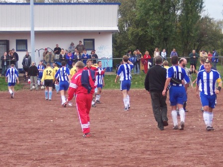 Es dauerte bis zur 35. Minute, bis Heckendalheim wieder gefährlich vor Dirk Hussong auftauchte. Und prompt der Ausgleich: Nach einem schnell ausgeführten Freistoß 20m vor dem Tor braucht der freistehende Heckendalheimer den Ball nur noch am chancenlosen Hussong vorbeizuschieben. Das 1:1 war zu diesem Zeitpunkt nicht unverdient, denn die Heimelf zeigte eine vorbildliche kämpferische Leistung. Die Partie wurde nun hektischer, gelbe Karten auf beiden Seiten waren die Folge. Beide Teams hatten vor der Halbzeitpause noch je eine gute Freistoßmöglichkeit, doch in beiden Fällen ging der Ball über die Latte.