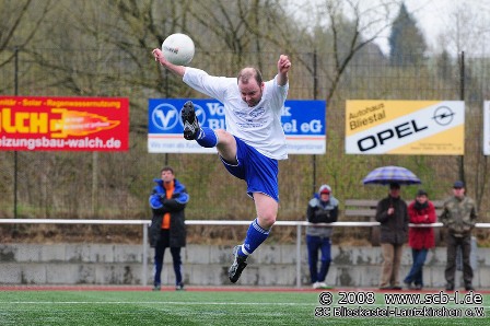 Bickenalb? Bickenalb? Beim erfahrenen SC-Fan wird da sofort etwas klingeln, gab es doch gegen die neu formierte Spielgemeinschaft der Eintracht 08 im Hinspiel ein 3:3. Bis dahin nichts ungewöhnliches, allerdings hatte die Vorgeschichte in den 90 gespielten Minuten mit einer 3:0 SC-Führung und drückender Überlegenheit des SC doch unbestritten einiges zu bieten. In letzter Sekunde sorgte die Eintracht damit für den nicht für möglich gehaltenen Ausgleich. Schon damals schrieb der scheinbar omnipräsente Fußballgott einmal mehr eine verrückte Geschichte, aber dass es in der selben Saison eine würdige Fortsetzung dieses Wahnsinns geben würde, die dem verrückten Original in nichts nachstehen sollte, damit hatten wohl die wenigsten im Vorfeld des Rückspiels gerechnet. Aber „believe it or not“ es sollte sogar noch ereignisreicher werden: Das Spiel war schon bevor es die ersten fußballerischen Highlights zu bieten hatte mehr als nur außergewöhnlich. Ein Hagelschauer färbte den saftig grünen Kunstrasen in Blieskastel in winterlichem weiß, der Schiedsrichter unterbrach das Spiel und so mussten die freiwilligen Helfer des SC die Außenlinien vom winterlichen Weiß befreien, bevor der Balle wieder rollen konnte. Sowas sieht man im April nicht alle Tage. Kurios, aber es sollte auch sportlich noch eine denkwürdige Partie folgen. Die Partie in Blieskastel war nach der Schneeunterbrechung geprägt von einer kombinationsstarken Heimelf, die das Gehäuse der Gäste ein ums andere Mal gehörig unter Druck setzte. Aber der Fußballgott hatte für diese Partie einen ganz besonderen Verlauf vorgesehen: Ein Freistoß brachte die Gäste aus dem nicht ganz so heiteren Blieskastler Himmel mit 1:0 in Front und schockte damit die Heimelf. Aber auch nach dem ersten Rückschlag agierte der SC konzentriert, aber leider auch weiterhin erfolglos: Alutreffer, knappe Situationen um Eintracht 16er und kaum Ballbesitz für die Gäste waren weiter die prägenden Szenen dieser Partie, zählbares auf Seiten des SC? Fehlanzeige! Das Tor fiel aber auf der, zumindest aus SC-Sicht, falschen Seite: Eine abgefälschter Schuss landete zum bis dahin absolut glücklichen 2:0 für die Gäste im SC-Tor. Große Überlegenheit, aber ein 0:2-Rückstand? Was sollte man von dieser Partie halten…